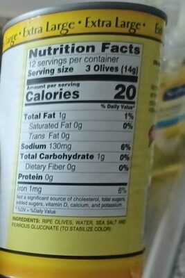 Olives, Water, Salt, and Ferrous Gluconate (to Stabilize Color).
