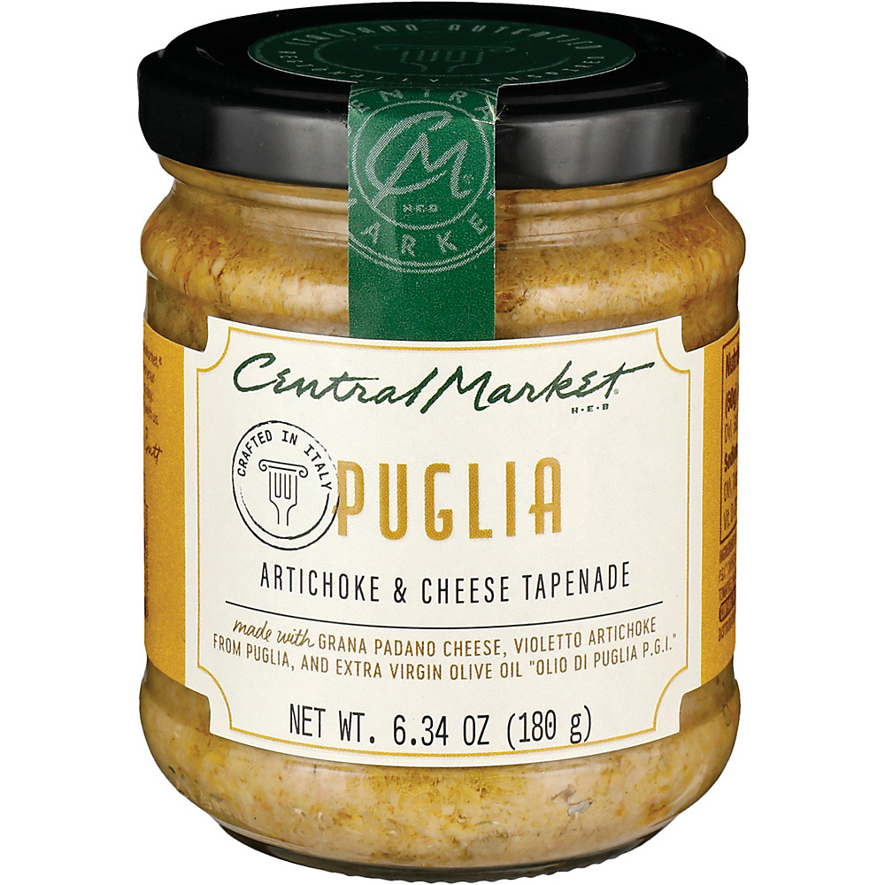 Crafted in Italy, this Central Market tapenade is made with Grana Padano cheese, violetto artichoke from puglia and extra virgin olive oil.