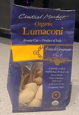 - The manufacturer of Organic Macaroni Product, Bronze Cut Lumaconi is Central Market.