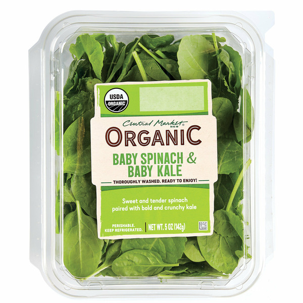 Central Market Organic Baby Spinach & Baby Kale is a sweet and tender spinach paired with bold crunchy kale. - Excellent source of Vitamins K, A and C - USDA Organic - Triple Washed - Ready to Use.