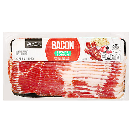 - The manufacturer of Lower Sodium Bacon is Essential Everyday.