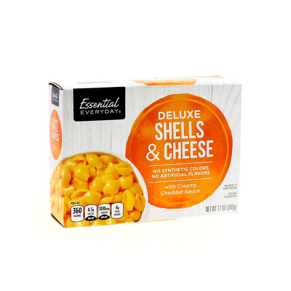 - The manufacturer of Deluxe Shells & Cheese with Creamy Cheddar Sauce is Essential Everyday.