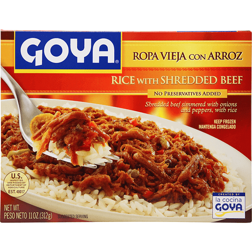 - The manufacturer of Rice with Shredded Beef is Goya.