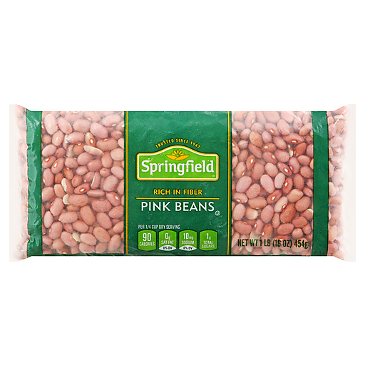 - The manufacturer of Rich in Fiber Pink Beans is Springfield.