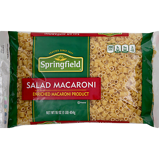 - The manufacturer of Enriched Salad Macaroni Product, Salad Macaroni is Springfield.