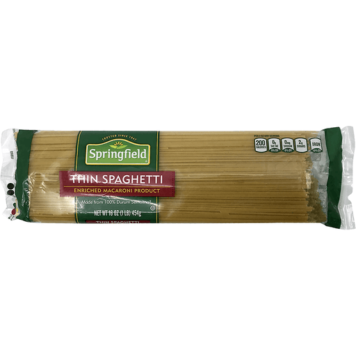 - The manufacturer of Thin Spaghetti Enriched Macaroni Product, Thin Spaghetti is Springfield.
