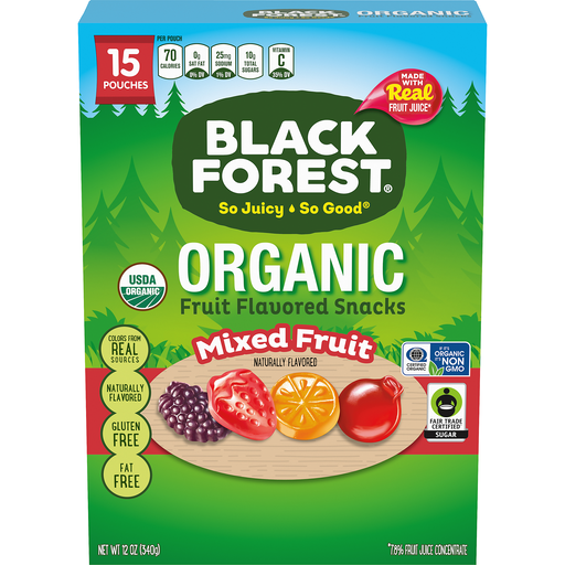 - The manufacturer of Grape Orange Cherry Strawberry Mixed Fruit Flavored Snacks is Black Forest.