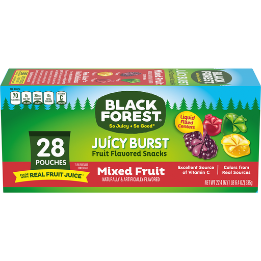 - The manufacturer of Mixed Fruit Flavored Juicy Burst Snacks, Mixed Fruit is Black Forest.