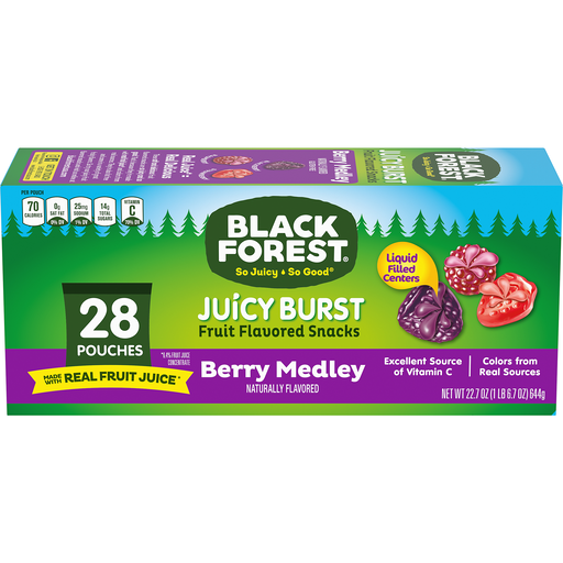 - The manufacturer of Berry Medley Fruit Flavored Juicy Burst Snacks, Berry Medley is Black Forest.