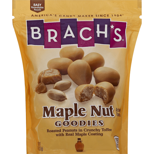 - The manufacturer of Maple Nut Roasted Peanuts in Crunchy Toffee with Real Maple Coating Goodies, Maple Nut is Brachs.