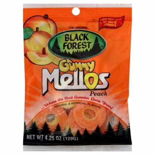 Black Forest Gummy Candy Peach Mellos in 4.5oz (128g) pack. Product of USA.