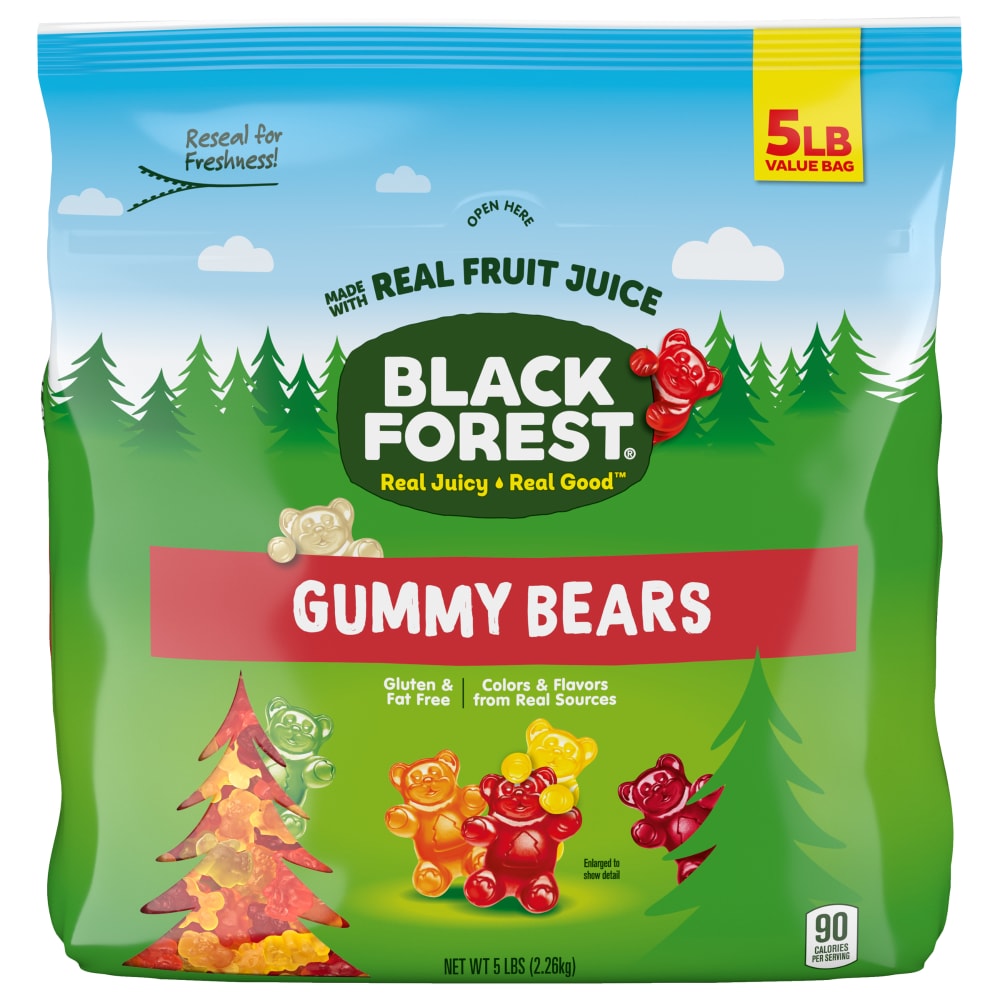 Delicious gummy bears in an assortment of flavors. Chewy, fruity, a fun treat to eat! Each resealable bag includes assorted Black Forest Gummy Bears.
