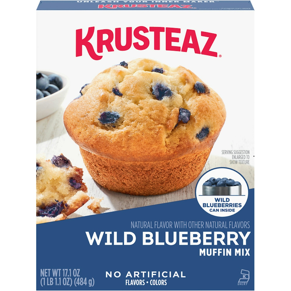 Create delicious blueberry muffins in minutes with Krusteaz Wild Blueberry Muffin Mix. Made with real wild blueberries, this easy-to-prepare mix results in tasty muffins that are on a whole new level of wild deliciousness. A versatile baking mix that you can use in recipes or customize with mix-ins. Try making wild blueberry scones—see the back of the box for a Krusteaz recipe. Made with no artificial flavors and no artificial colors, this blueberry muffin mix embodies the excellence you can expect from Krusteaz. You love baking and we love making craveworthy mixes.