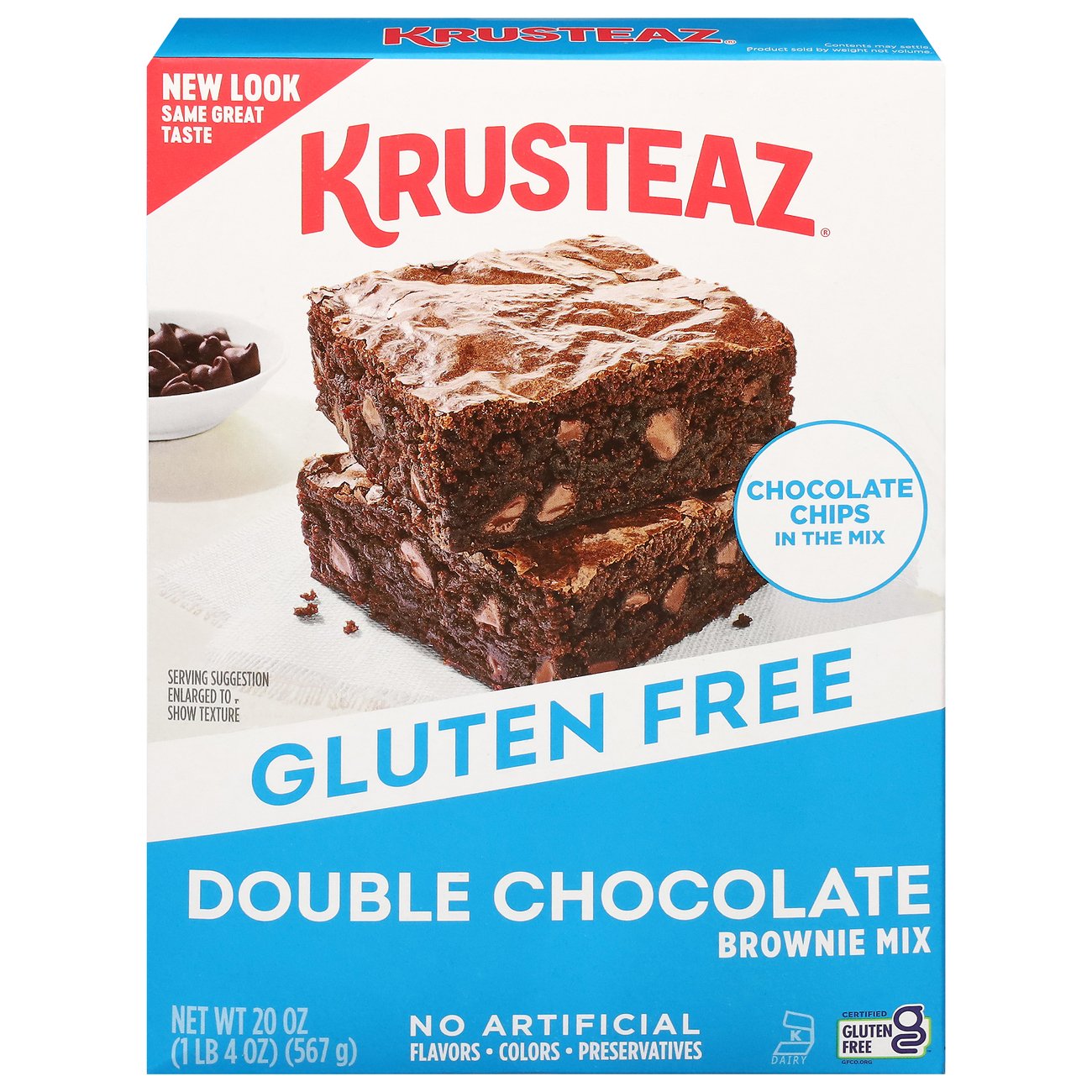 What’s better than a moist and rich fudgy brownie with real chocolate chips? One that’s gluten free. Krusteaz Gluten Free Double Chocolate Brownies pack all the great flavor of our classic brownie mixes but without the gluten! Simply add water, vegetable oil and eggs to the mix and have mouthwatering brownies in less than an hour. With no artificial colors, flavors or preservatives, Krusteaz Gluten Free Double Chocolate Brownies are a guilt-free dessert for any day of the week. This mix comes in a 20-ounce box.