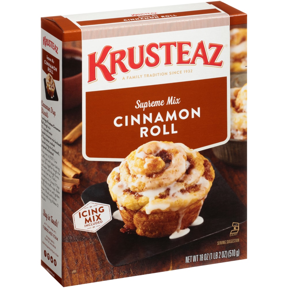 - The manufacturer of Supreme Mix Cinnamon Roll, Cinnamon is Krusteaz.