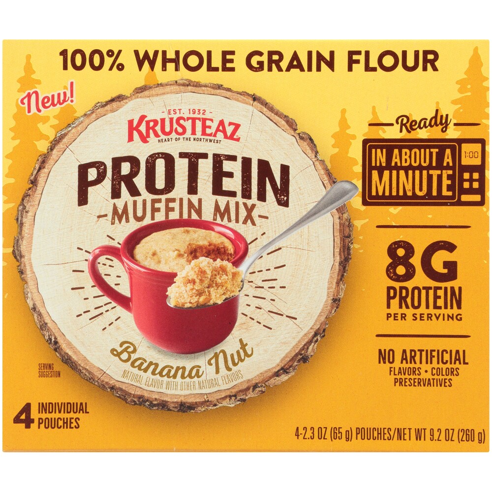 - The manufacturer of Banana Nut Protein Muffin Mix, Banana Nut is Krusteaz.