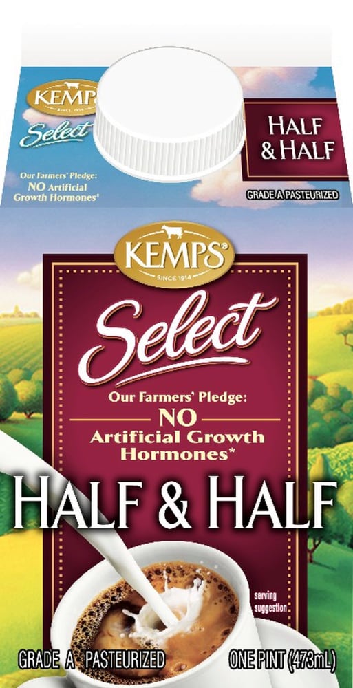 Kemps Select Half and Half is made with real milk and cream from family farms, so it's smooth, creamy, and delicious every time. Made from cows not treated with artificial growth hormones, Kemps half and half is a delicious way to elevate your favorite beverages and recipes. This half and half makes a great alternative for coffee creamer and a rich, creamy addition to shakes and smoothies. Try using this fresh half and half in baking to make delicious scones, biscuits or other baked goods. When used for cooking, Kemps half and half adds creaminess to pasta sauces, soups and more.
