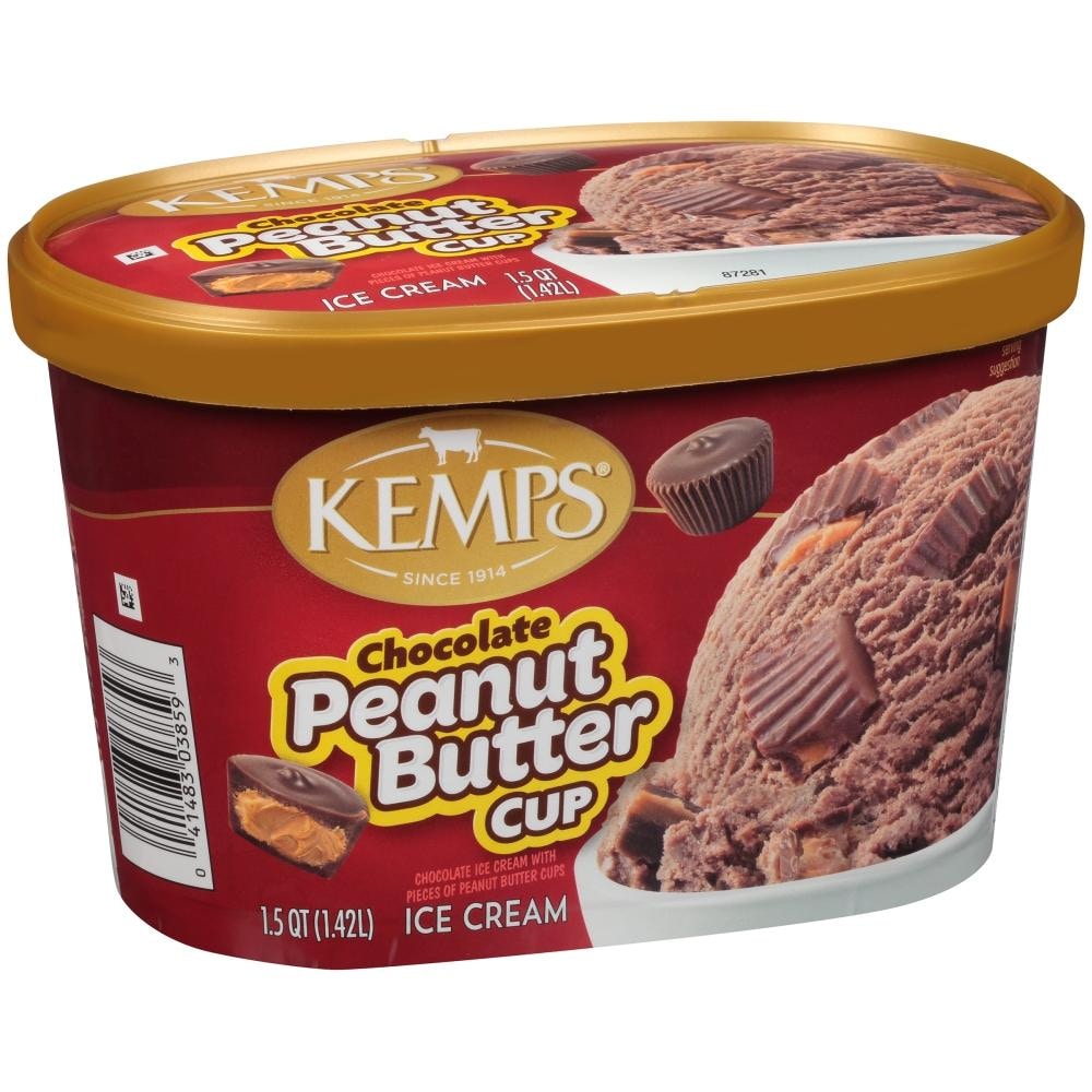 Delight your sweet tooth with a delicious bowl of Kemps Chocolate Peanut Butter Cup Ice Cream. Our Chocolate Peanut Butter Cup ice cream features chocolate ice cream with pieces of peanut butter cups that the whole family will love. Enjoy this delicious ice cream by the scoop with a cone, in a bowl with all your favorite sundae toppings, or as a side with your favorite cake. Since 1914, Kemps has been delighting families throughout the upper Midwest with wholesome and delicious dairy products. Farmer owned. Family loved.