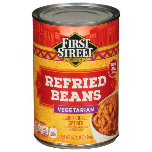 - The manufacturer of Vegetarian Refried Beans, Vegetarian is First Street.