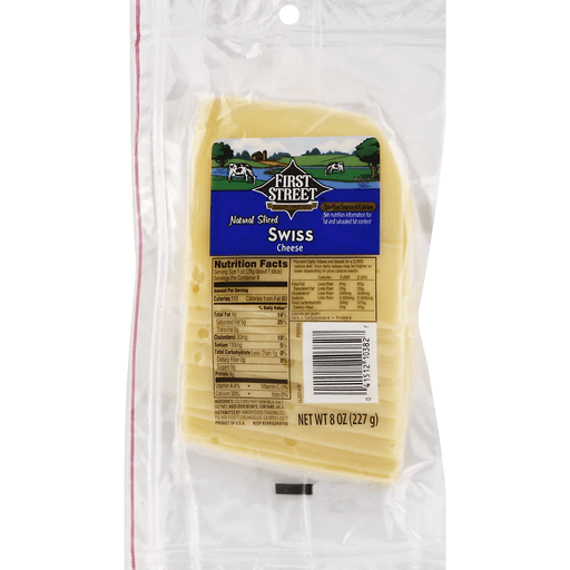 - The manufacturer of Swiss Sliced Cheese, Swiss is First Street.