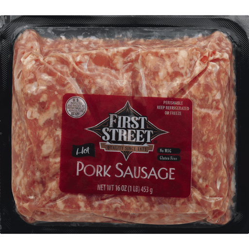 - The manufacturer of Hot Pork Sausage, Hot Pork is First Street.