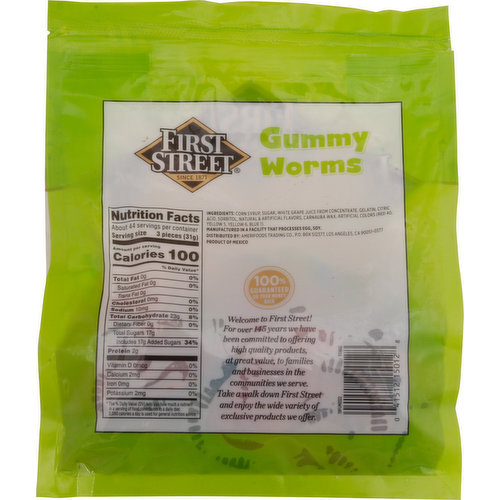 - The manufacturer of Gummy Worms Candy, Gummy Worms is First Street.