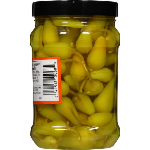 Whole Cascabella Peppers, Water, Vinegar, Salt, Calcium Chloride (Firming Agent), Sodium Bisulfite (as a Preservative), Turmeric (Color), Yellow 5 (Color).