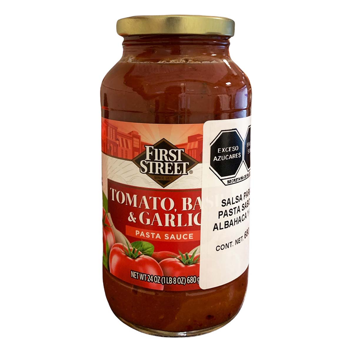 - The manufacturer of Tomato, Basil & Garlic Pasta Sauce, Tomato, Basil & Garlic is First Street.