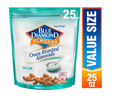 Contains 1 - 25 ounce bags of Blue Diamond Roasted Salted Almonds We add just the right amount of salt to complement the almond's delicate flavor Perfect for snacking, they're also ideal for your favorite recipes 3g fiber, 0g trans fat Cholesterol free.