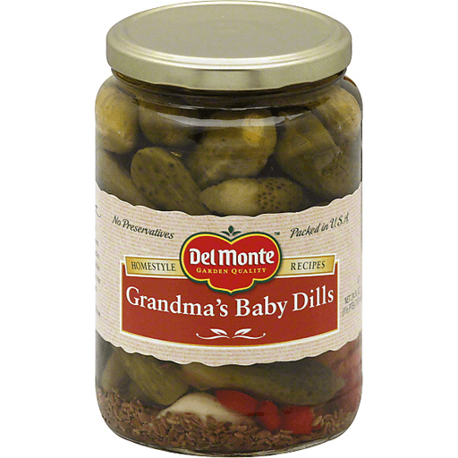 - The manufacturer of Grandma'S Baby Dills is Del Monte.