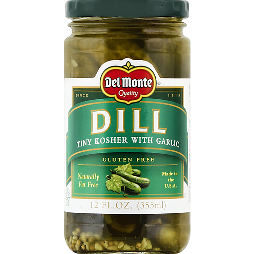 - The manufacturer of Dill Tiny Kosher with Garlic is Del Monte.