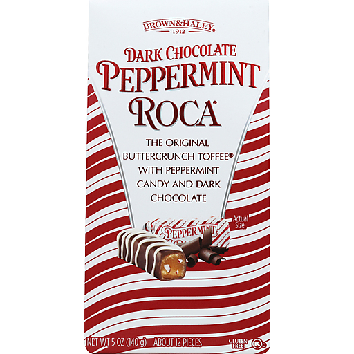 - The manufacturer of Buttercrunch Toffee, Dark Chocolate Peppermint Roca is Brown & Haley.