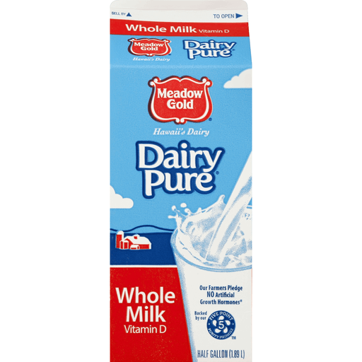 Vitamin D. Our farmers pledge no artificial growth hormones (No significant difference has been shown in milk from cows treated with the artificial growth hormone rBST and non rBST treated cows). Backed by our Five Point Purity Promise. Hawaii's dairy. As your trusted dairy, we're passionate about the purity of our milk. That's why we hold our milk to the highest standard. Our farmers pledge to never use artificial growth hormones, just like we pledge to deliver fresh, quality milk from farm to fridge. www.dairypure.com. Comment? 1-800-395-7004. Grade A. Pasteurized. Homogenized. Gluten free.