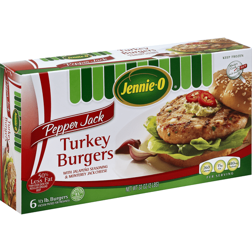 - The manufacturer of Pepper Jack Turkey Burgers with Jalapeno Seasoning & Monterey Jack Cheese is Jennie-O.