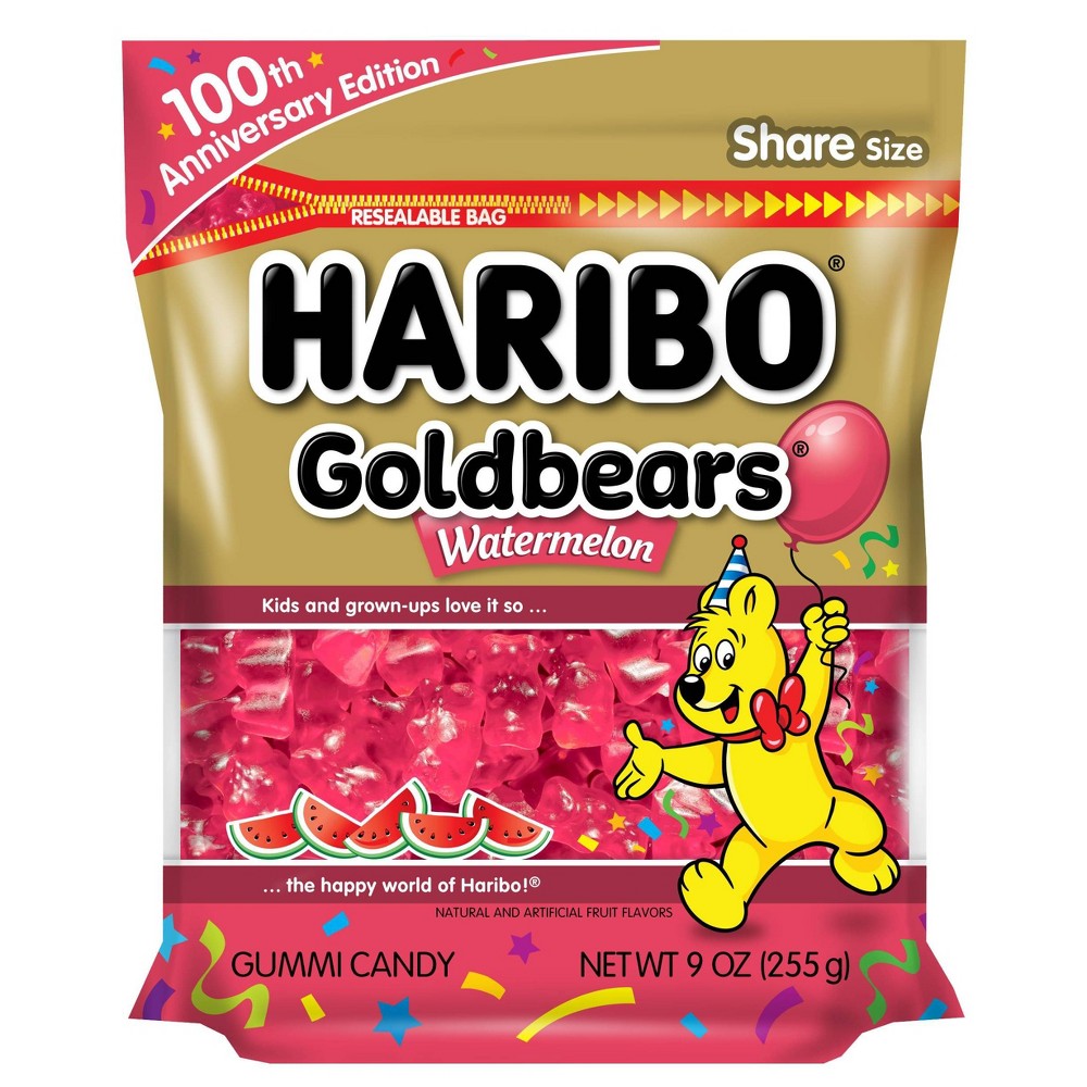 100th Anniversary Goldbears edition watermelon flavored gummi bears. Tri-colored wedges of pillow-soft candies, with a fresh watermelon flavorA mouth-watering treat for all ages.