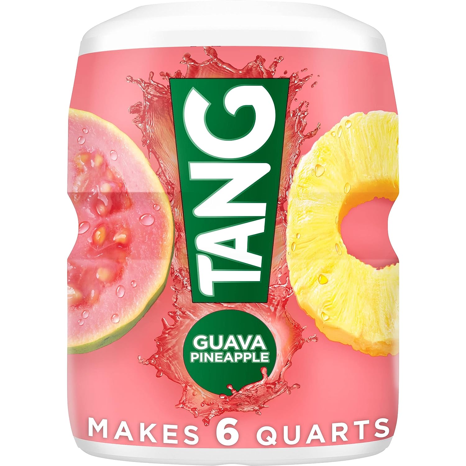 Tang Guava Pineapple Drink Mix is a great way to jump start your day. Made with a refreshingly tropical guava pineapple taste, Tang has 100% of your Daily Value of Vitamin C and is a good source of calcium. This Tang Guava Pineapple Drink Mix comes in a resealable container to help lock in flavor and with an easy-measure lid for simple preparation. Each 18 ounce container makes 6 quarts of product, so there is enough for the whole family to enjoy! To prepare, simply pour powdered fruit drink mix into plastic or glass pitcher, add water, stir, and enjoy! Start your day off right with the refreshing taste of Tang!