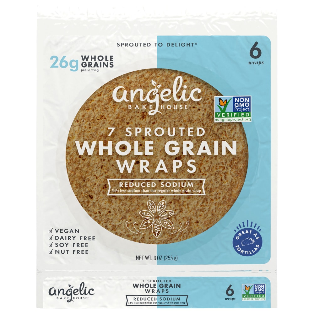 - The manufacturer of Sprouted 7 Whole Grains Reduced Sodium Wraps, 7 Whole Grains is Angelic Bakehouse.