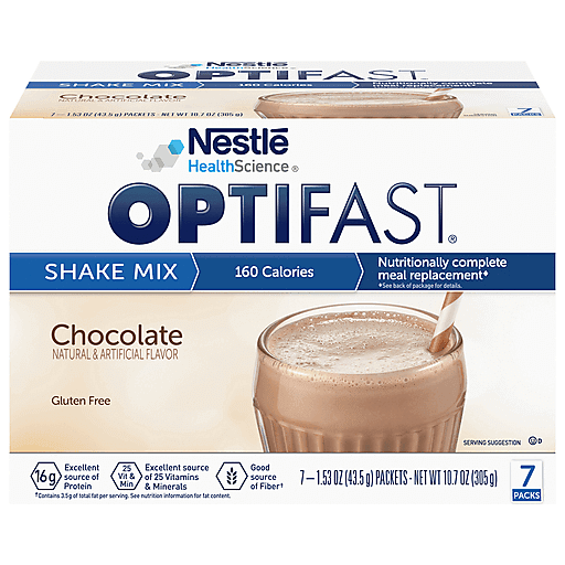 Nestle HealthScience. Nutritionally complete meal replacement (The use of Optifast products as a sole source of nutrition is intended for individuals who are participating in the comprehensive Optifast program which includes medical supervision, lifestyle education and ongoing personalized support. For individuals who are participating in the comprehensive Optifast program, the meal replacement products provide complete nutrition in 5 servings per day). Sweetened with non-nutritive sweeteners. Suitable for lactose intolerance. Maintain an adequate daily fluid intake.