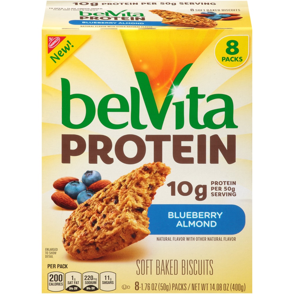 - The manufacturer of Blueberry Almond Protein Soft Baked Biscuits, Blueberry Almond is Belvita.