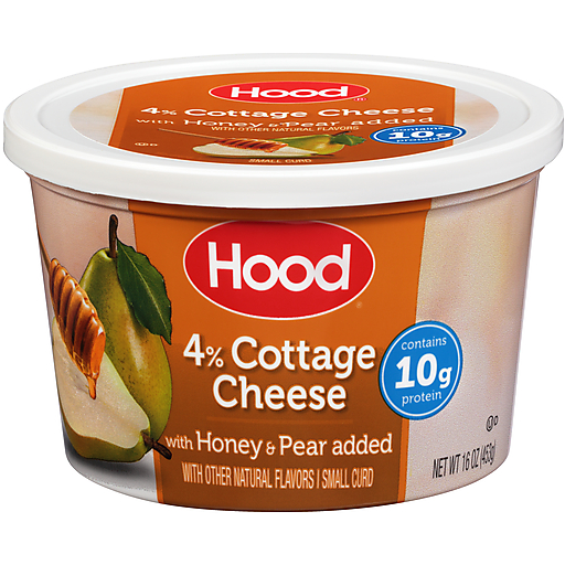 - The manufacturer of 4% Small Curd Cottage Cheese with Honey & Pear Added, Honey & Pear is Hood.