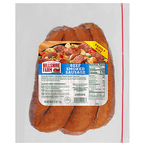 - The manufacturer of Beef Sausage, Smoked is Hillshire Farm.