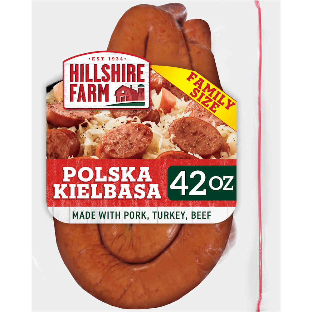 Hillshire Farm Polska Kielbasa Smoked Sausage is the delicious answer to weeknight dinners. Handcrafted with natural spices and only our finest cuts of meat, this Polish sausage features rich, bold flavor in every bite. Simply heat this fully cooked sausage for easy appetizers or meals. This 42 oz family size package of smoked kielbasa is resealable, making it easy and convenient to store.
