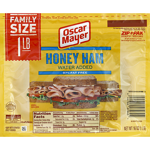 Oscar Mayer Honey Ham is made with quality, 97% fat free meat and is packed with delicious honey flavor. Enjoy it on your favorite sandwich!