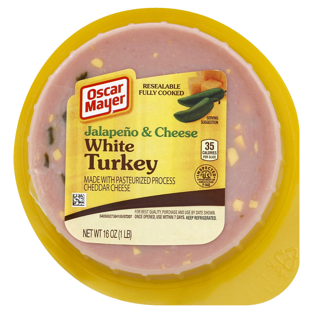- The product category for Oscar Mayer, Jalapeno & Cheese White Turkey is Cheese.
