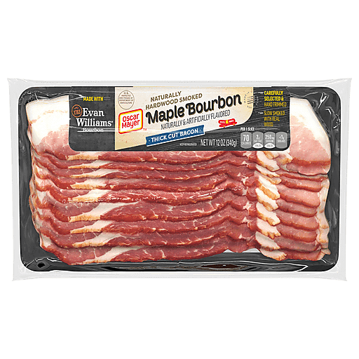 - The manufacturer of Maple Bourbon Naturally Hardwood Smoked Thick Cut Bacon, Maple Bourbon is Oscar Mayer.