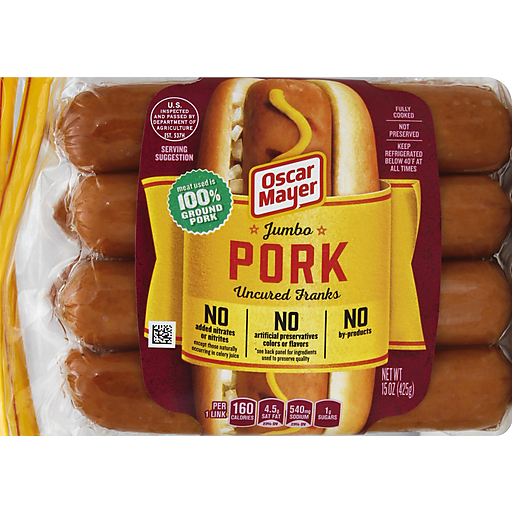- The manufacturer of Pork Jumbo Uncured Franks, Pork is Oscar Mayer.