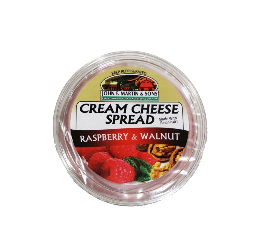 - The product category for John F. Martin & Sons, Cream Cheese Spread, Raspberry & Walnut, Raspberry & Walnut is Cream Cheese.