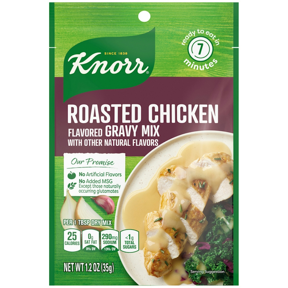 Knorr Gravy Mix Roasted Chicken is a traditional chicken gravy, served perfectly over roasted chicken and mashed potatoes. Our hearty, easy-to-make gravies come in a variety of delicious flavors that add warmth to any meal. Makes 1-1/4 cups of gravy. Cooks in 7 minutes. Great for pairing with roasted chicken.