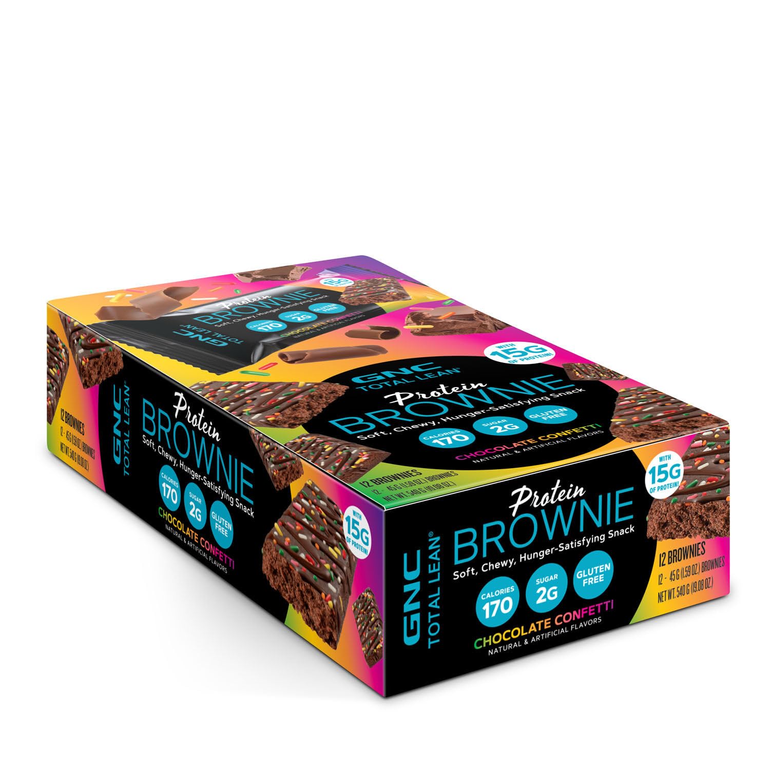 HIGH PROTEIN, JUST 2G OF SUGAR Packed with 15g of high-quality protein and 5g of fiber to keep you full and satisfied, with only 2g of sugar per serving to satisfy that sweet tooth!* HAVE YOUR CAKE AND EAT IT TOO Perfectly portioned and handy when you crave something sweet and indulgent as a brownie. GNC Total Lean Protein Brownie helps you defeat sweet cravings and provides the satisfaction of eating a real piece of cake without the sugar and calories to help you stay on track and top of your goals! CONVENIENT FOR ON-THE-GO Total Lean Brownie can help you stay on track when you're hungry and craving something sweet. Throw it in your purse for those daytime pick-me-ups or treat yourself to one after dinner for dessert! GNC Total Lean has your back when it comes to weight loss and weight management needs!