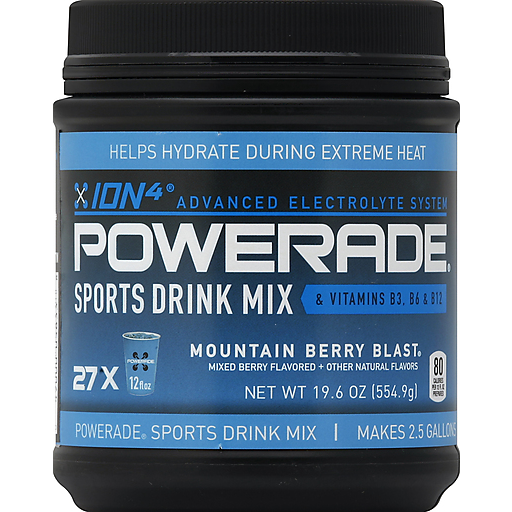 - The product category for Powerade, Ion4, Sports Drink Mix, Mountain Berry Blast , Mountain Berry Blast is Sports & Energy Drinks.